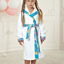 A warm terry bathrobe for the girl is the best suited as homewear after bath procedures. It absorbs moisture well and prevents the child from freezing. A gown with a belt is ideal for wrapping a child in it after a shower. A warm product with a zipper is perfect for everyday wear.