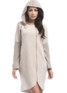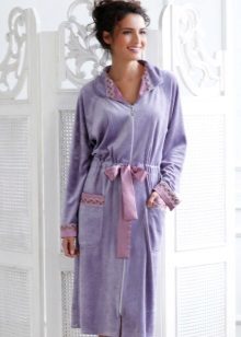 Dressing gowns with a zipper are convenient and practical. They are both bath and for everyday wear. Lightning on the floor will allow the gown floors to diverge, as is the case with a model with a smell, and it is much faster to fasten it than a number of buttons. In addition, a zipped robe may have an elastic waistband that will emphasize the waist.