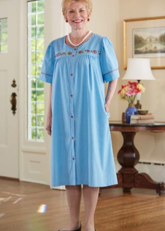 In old age, people often freeze, so a dressing gown for grandmother should be warm and cozy. Usually they like soft flannel with a belt, the model is possible both with buttons and without them. The product must have two capacious pockets in which an elderly woman will be able to wear a handkerchief, glasses and other little things she needs.