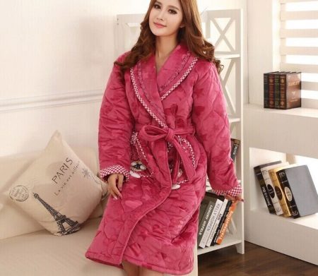 Quilted bathrobes on a synthetic winterizer are great for everyday wear. They emphasize the advantages of the figure and hide the flaws, perfectly warm in the cold season. The synthetic winter bathrobe is light, soft and comfortable. The pattern of the quilted fabric can be varied, it plays a kind of decorative role and makes the dressing gown even more attractive in appearance.