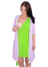 In specialized salons for expectant mothers, a zipper bathrobe usually comes with a special shirt. A shirt is also a mandatory item of clothing in the hospital, you will need to wear it under a bathrobe. So that every time you breastfeed your baby you do not need to pull her up, they make a large stretch neckline, a feeding slot or a special clip on the shirts. You only need to unzip a little zipper on your bathrobe and give your baby a chest
