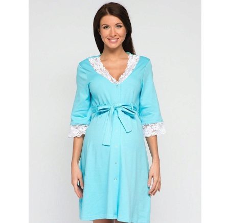 If the dressing gown has lace, it should also be made of natural materials, be soft so as not to irritate the skin of the mother and baby.