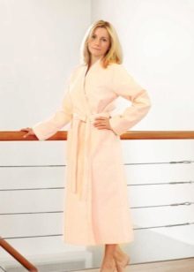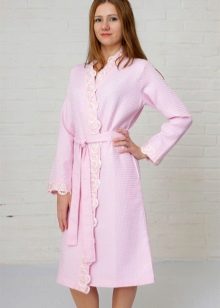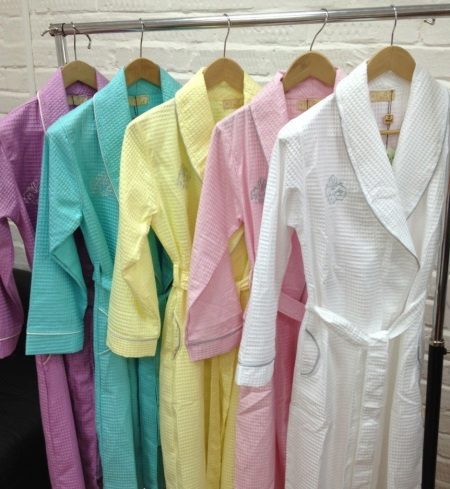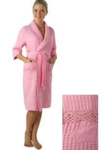 Often, robes made of silk or terry cloth are not the best choice for the home. For example, right after a bath or shower, not everyone will want to put on a bathrobe made of these materials. It is possible that the terry model may seem too hot and dense, while the silk will adhere to wet, heated skin, which is also not too pleasant. An alternative to such things is a waffle dressing gown.