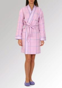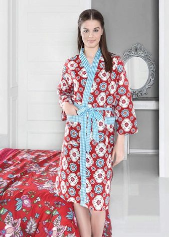 The cut in the dressing gown may be different. Someone will like styling for neat and concise models of classic European costumes for the home. Others will appreciate a waffle bathrobe tailored in the manner of a Japanese kimono. The choice of the color scheme of the bathrobe also depends solely on the subjective preferences of the person. It can be both modest monophonic models, and decorated with varying degrees of complexity with embroidery or bright prints. The main thing is that the coloring does not deprive the wafer fabric of all its competitive advantages, which were mentioned earlier.
