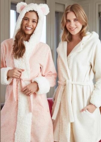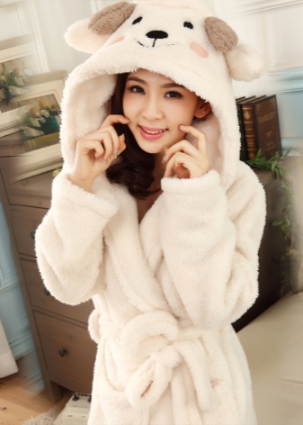 Popular among young people today are the original models of terry robes with false ears on the hood, and sometimes with a tail at the back.