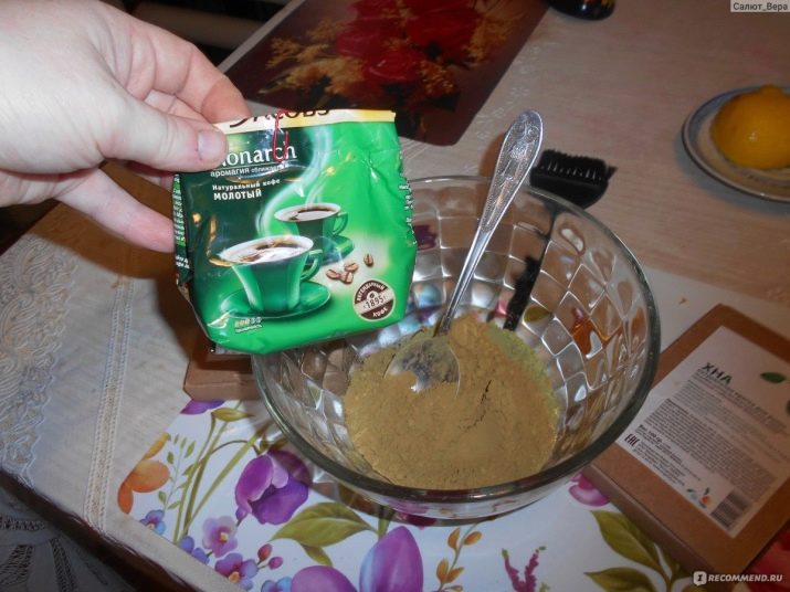 The color obtained on the hair depends on the components added to the base material. So for all the dark shades henna mixed with basma (indigoferoy dyeing), amloy, vetiver, nim tree leaves, bringaraj. And also to enhance the effect, you can prepare a composition of 100 g of henna with cooked strong coffee - the result will be much more intense and impressive. In some dyes, manufacturers already add it to the list of ingredients, as well as cocoa oil.