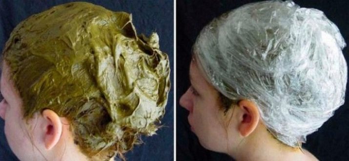 To make the desired remedy, colorless henna should be mixed with water, then introduce the remaining components and stir. The mixture is applied over the entire length of the strand. Particular attention should be paid to the roots, so the product is applied to the skin with massage movements. The treated hair is wrapped in a bag and fixed with a towel. It is recommended to keep it under such a cap for up to 90 minutes.