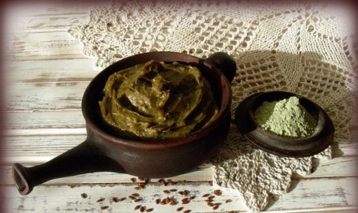To make a mask from henna, you need to take a glass or ceramic container, pour powder into it, pour it with hot water. Dilute the components until a thick mass is obtained. Hot water can be replaced with herbal decoctions. You can make a decoction of medicinal plants or add a couple of tablespoons of herbs, powdered, then pour water.