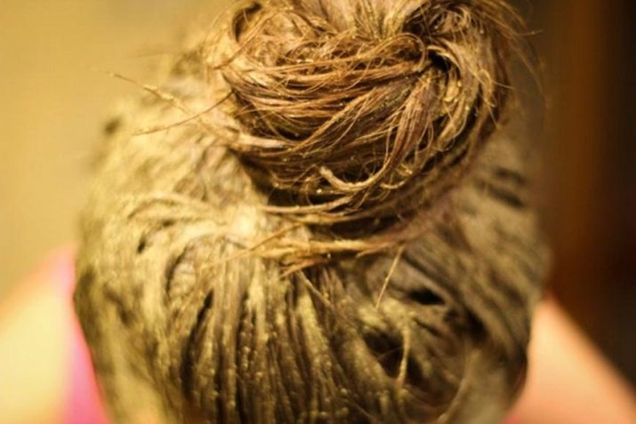 To prepare the composition, you should mix the powder and hot water. When the mass becomes warm, the remaining components are introduced into it. The mass is applied to the locks, wrapped in a film or bag, then covered with a towel. Keep a nourishing mask on your hair for up to 40 minutes.