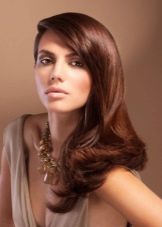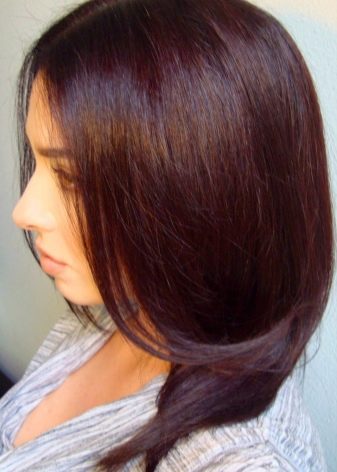Owners of chestnut-colored curls for staining can use the product in a mahogany shade. When applying such a paint, it should be remembered that staining can contribute to the addition of several years to the image. It is for this reason that it is not suitable for everyone.