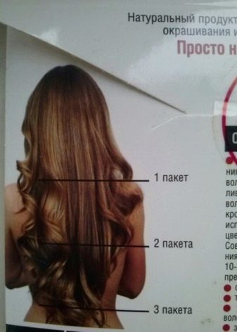 However, there are conditional recommendations. For example, for staining short curls (up to 10-12 cm), about 100 g of a coloring agent is required. For owners of hair with shoulder-length hair, the amount of natural dye is already doubled. For painting curls below the shoulders, usually 350-400 g of powder is required.