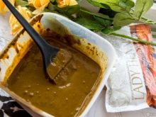 The product is diluted with very hot, but not boiling water to the consistency of thick sour cream. The mixture should not flow, but the spoon in it should not stand. The color after contact with water should change to red (ideally) or dark red.