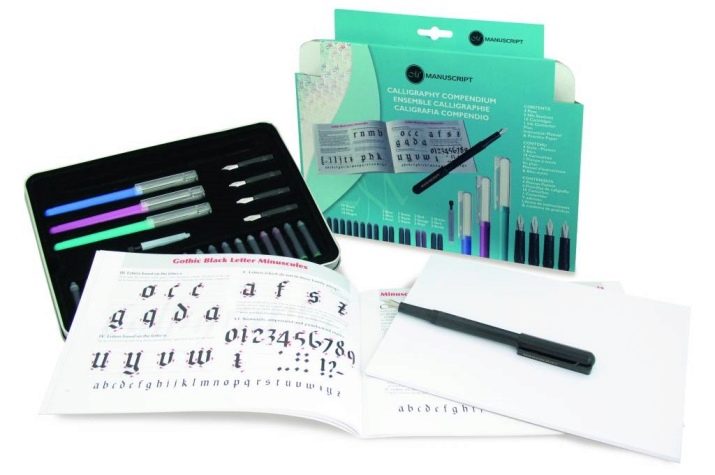 Calligraphers are sensitive to the tools they use. Usually they start a working pencil case, where the best feathers and brushes fall, as well as cartridges, erasers, rulers. But you can buy a ready-made kit, where everything is already selected by the manufacturer.