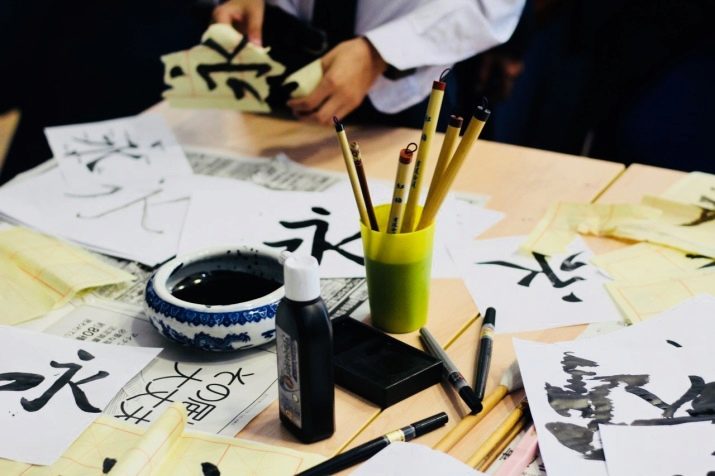 Chinese calligraphy is an art formed over 2 thousand years ago. It has several styles. Calligraphic Chinese writing kit includes brushes, ink, paper and ink stone. The ink sticks were usually erased about it - this is how the desired material was obtained.