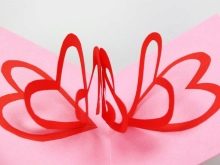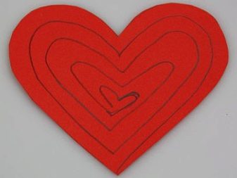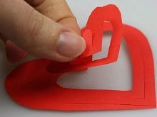 - Stretch the spiral of the heart and fold the figure, the middle part is attached to one of the halves of the heart, for the sake of volume, you can bend the figure out and get a three-dimensional Valentine.