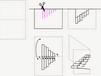 Another scheme for a novice master who seeks to master the art of Kirigami is a ladder. Here, the user will learn how to use several tools at once, including shovels, spatulas and a metal ruler. Instead of scissors, it’s more convenient for some to use a clerical knife. You can redraw any staircase diagram, but the most difficult thing is to reproduce the mirrored steps. The algorithm of actions is as follows: