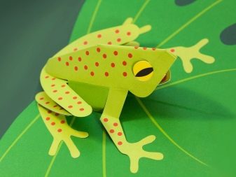 The frog is a classic figure for a beginner. It is ideal for children who are just starting to learn paper skills. The procedure is quite simple. In the process, you will need to use a quality glue stick that dries quickly and leaves no residue: