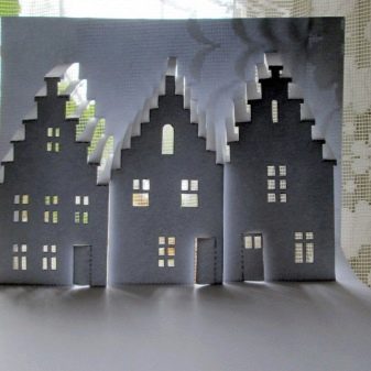 Volumetric crafts require much more care, experience and work. Reproduction of three-dimensional structures is not a task for a beginner, but if you follow the instructions, there is nothing impossible in this. You can recreate anything from the house to the castle or the most real historical or artistic scenes. The three-dimensional image is folded thanks to notches, bends and holes. The more complex the design, the more paper will be required in the process. But the result will really justify itself, such an article can be an interesting idea for a handmade gift for relatives and friends.