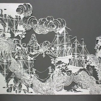 First, a specific template is selected, after which the details are cut. You can cut it out from a separate sheet of paper, or from several. To obtain volume fragments or the whole figure, you will need to expand the sheet. In the process, you will need to attract a fair amount of imagination and, accordingly, a set of tools. In addition to ordinary scissors, small stationery knives that are different in shape and size can also be suitable for work.