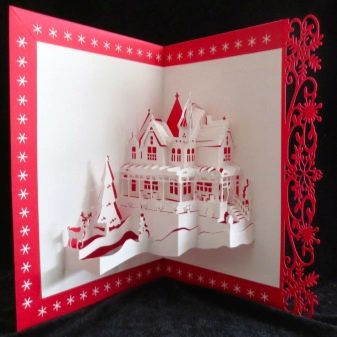 Kirigami can be seen, for example, in popular folding children's books. All this is created manually, and paper figures originally and graphically recreate scenes from history. Turning pages creates a sense of true storytelling dynamics.And bright colors and careful study only enhance perception. Postcards where figures can be collected separately and inserted into specially cut fields also belong to the Kirigami industry.