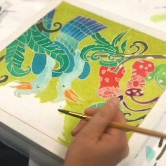 At first glance, the techniques of cold and hot batik seem complicated, but such an impression is formed only when meeting with them. Everyone can learn to draw beautiful paintings on fabric, as well as paint clothes or decor items, creating unique author's works. Summing up, we say that the choice of paints depends on the degree of your preparation and purpose: for clothes, in any case, the advantage will be on the side of aniline paints, but for beginners it is easier to work with acrylic.