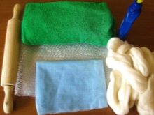 - A rug on which felting of wool will be made. Typically, a bubble wrap is used. Perfectly any other covering materials that have a rough surface and do not allow moisture to cope with this task.