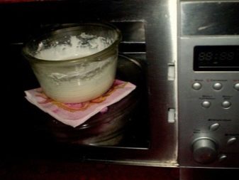 - it happens that the very first cooking of the mixture in the microwave leads to digestion - very hard lumps can really be thrown away, but rubber-like lumps can be stretched just by coating the hands with glue;