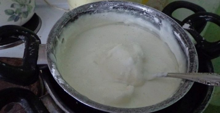 - Heat the medium heat under the pan, cook the mixture on it until smooth, occasionally stirring the mass.