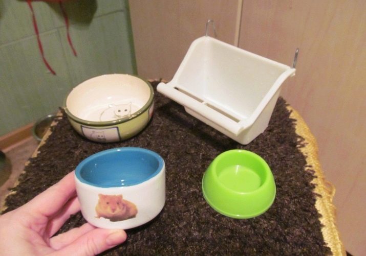 It is better to use a ceramic bowl rather than a plastic one, as it is lightweight, and the hamster can easily tip it over. It is recommended to periodically scatter food on the floor in order to maintain the hamster's natural instinct for finding food, collecting and storing it.