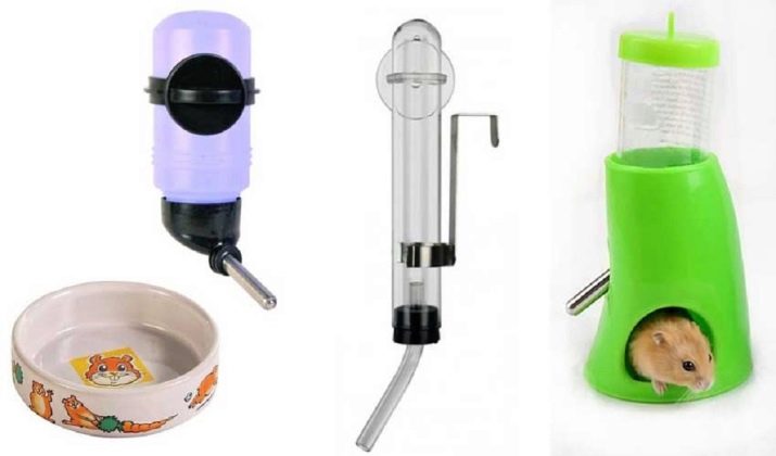 Water is not recommended to be poured into an ordinary saucer or bowl: the hamster can turn them over, and the litter will be constantly wet. It is better to use a special drinker. There are several types of them: a drinking bowl with a pocket and a ball, vacuum and nipple. They are fixed to the cell outside and will not take up space inside.