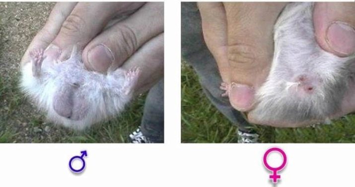 But still there is a way to distinguish babies from each other. Newborn hamsters on the pope have two pink spots that are not covered with hair (this is their genitals and anus). In girls, these spots practically merge, but in boys, one of them is located directly under the tail, and the second is almost in the center of the abdomen.