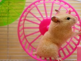 Inside the house for the rodent will need to install a wheel. Unlike toys for dwarf hamsters, a Syrian will need a wheel with a diameter of at least 20 centimeters. As a rule, cages designed specifically for such pets already contain running wheels. In addition, the animals will be happy to spend time in a walking ball.