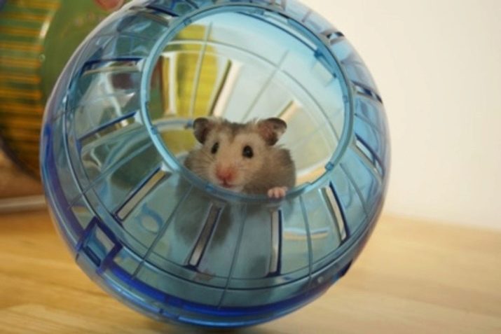 You can provide your pet with a playground, labyrinths of tunnels. If the hamster wants to move around the apartment, then he needs to walk in a walking ball. If there is no walking ball, then the hamster may be in danger: it gets stuck somewhere, it will be pinched by the door, it will fall, eat poisonous plants, it will be able to gnaw through the electric wire. Keep in mind that a runaway hamster is very difficult to catch.
