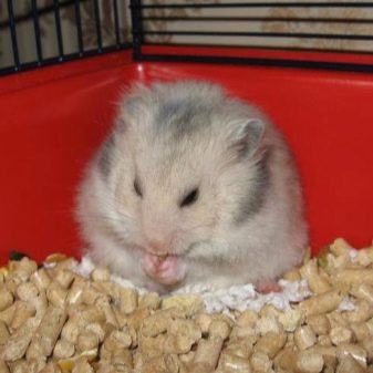 An alternative to simple sawdust will be pressed sawdust or granular. They respond to higher quality and retain moisture and odor for much longer than simple friable sawdust. With these characteristics, the cell will have to be cleaned and washed in about 5-6 days. At a cost they, of course, will be more expensive, but you will be provided with safety and convenience. But this kind of filler is not suitable for the smallest dwarf hamsters. It will be very difficult for an animal to run along such granules.