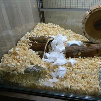 The next drawback is that if your pet's coat is thick, long and shaggy, the sawdust will most likely get tangled in its coat and get stuck there. And this means that the animal will need to be cleaned and washed. Sawdust itself is very light, and if the hamster is very active, then most likely this filler will fly out of the cage, and you will have to clean your house too.
