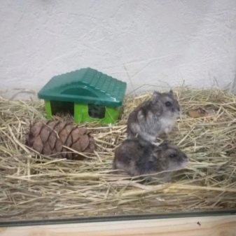 The filler is suitable for a rodent of any size, even for the smallest - dwarf. It will be easy for the pet to bury itself and hide in the corn filler. But small particles can fly out of the cell.