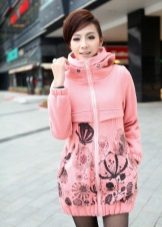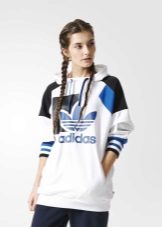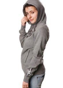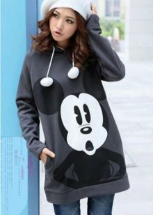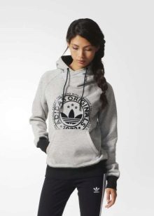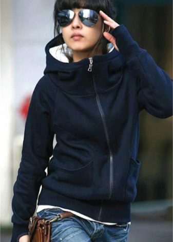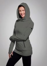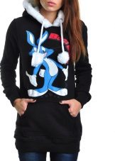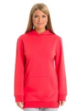 The classic hoodie gives its owner a sporty and slightly hooligan look. It can be just below the waist, and reaching the middle of the thigh. In addition to one pocket, maybe two. The hood is made both with ties and without. By the way, in some models the hood can transform into a high collar.
