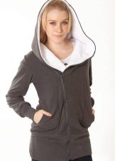 Hoodies and hoodies, respectively, have a zipper, double hood, fleece lining or fur insulation. They are sewn from thicker knitwear or from fleece.