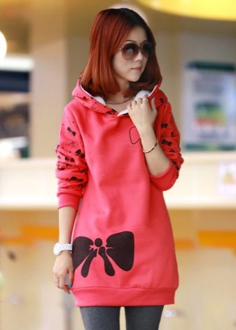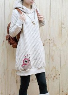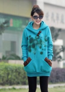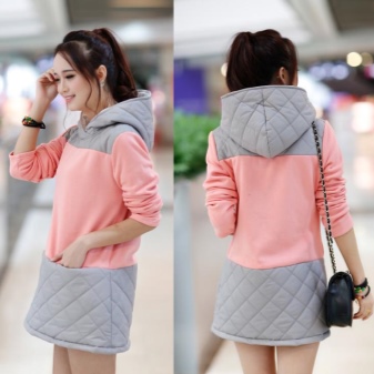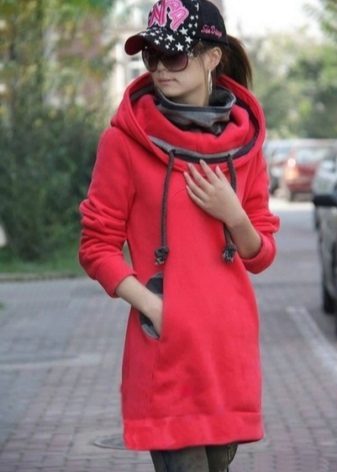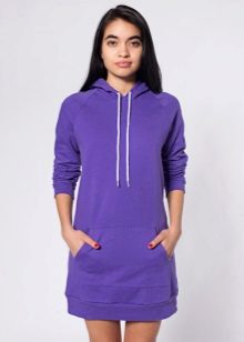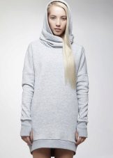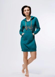The hoodie dress is sewn of thin knitwear, it can be with or without a pocket, and the bottom of the product can be with the usual cuff or slightly flared. This model is suitable for the beach.