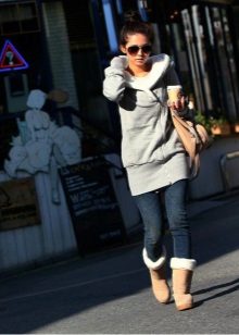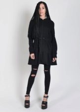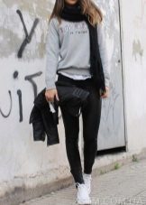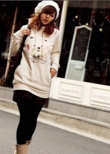 For walks or trips around the city, you can wear it with leggings, juggins, jeans, tight pants or a short skirt. You can also experiment with shoes: sneakers and sneakers can be replaced with rough boots or short ankle boots.