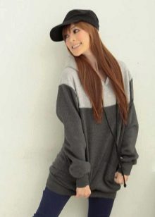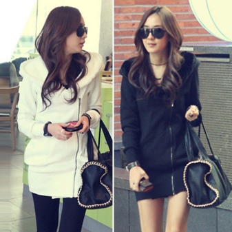 The length reaching the middle of the thigh and the volumetric cut will help to hide a not too thin waist or some problems in the proportions between the hips and shoulders. And the owners of modest forms of hoodies will help to add volume to the figure and hide excessive thinness.