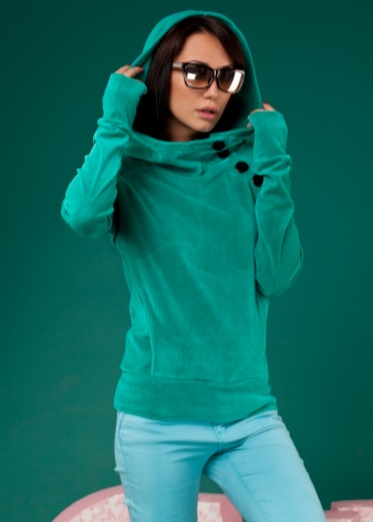If we compare hoodies with a sweatshirt, then the latter are sewn mainly from one type of fabric - tight knitwear, namely a footer.Hoodies are sewn from a footer or fleece, there are models on the lining of knitwear or fur.