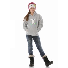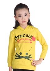 Older children choose hoodies with inscriptions, logos, emblems of their favorite sports teams, funny smilies, floral ornaments, etc.