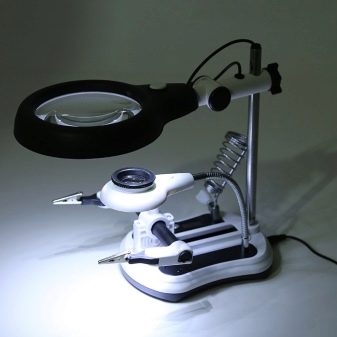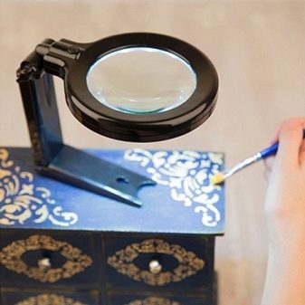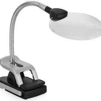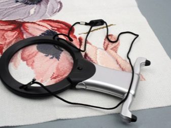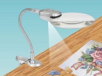 The main advantage of the magnifier for needlework is its exceptional simplicity.The product has a convenient clothespin, thanks to which it can be fixed on any horizontal and vertical surfaces. A slightly more complex device is a desktop magnifier for creativity, but it is it that allows you to provide a detailed examination of even the smallest elements.