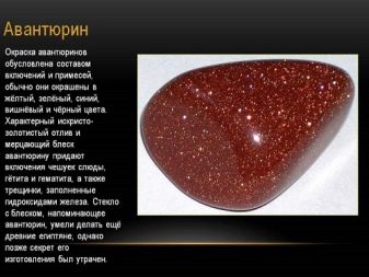 There are several plausible versions about the origin of the name of the stone. According to one of them, the origin of this semiprecious mineral may be associated with the Italian phrase per avventura, which translates as “chance." According to legend, the master poured ordinary glass filings of copper into the mass from which he was going to make glass, the product came out so unusual that a special name was invented for him.A little later, it began to be actively applied to stone, which was very similar to this unique glass. Many argue that the stone could also get its melodious name from the word aventura, which in translation from the same Italian sounds like "happiness" or "fun adventure".