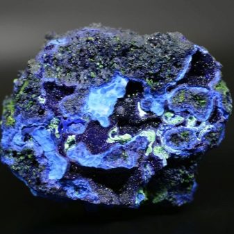 A distinctive feature of the mineral is its color: dark, deep blue. Its hardness is from 3.5 to 4 points on the Mohs scale. It contains copper, which gives the mineral a characteristic blue tint. Azurite is a carbonate stone, so it crumbles in hydrochloric acid, resulting in a light blue liquid.