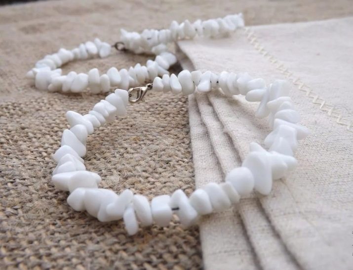 White agates are used quite often, as they are very beautiful and easy to process. During the Paleolithic, various tools for labor were made from them. And also many stones were found in the pyramids of Egypt and the Sumerian burials. Before you buy jewelry from this mineral, you should study its properties.