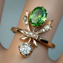 Jewelry with a demantoid requires special care. It is not recommended to wear them all the time. Let it be decorations for festive occasions. Avoid chemical contact with the mineral. This applies to detergents, perfumes.