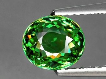 The size of the demantoid should not be large. In nature, there are practically no stones of this breed with a diameter of more than 1 cm. Tactile sensations will also tell you something. The glass fake warms up much faster in the hand. Another way to understand what is in front of you is to use a magnet. Green pomegranate is well magnetized.