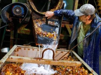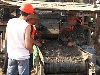 Nuggets rise to the surface with soil under hydraulic pressure. Then they are cleaned, washed from sand and earth. This is the most modern way.